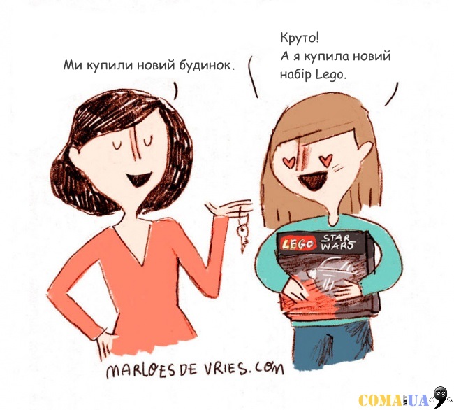Марлос де Вріз (Marloes De Vries) – художниця з Нідерландів, яка любить робити замальовки з життя. Одна з її улюблених тем – дорослішання. Як часто дорослим здаєтья, що вони досі діти?