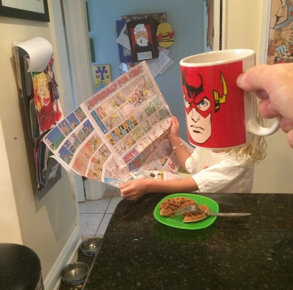 Один дуже сучасний татусь зміг зробити цілу серію цікавих світлин, на яких його діти перетворювались у суперлиходіїв та супергероїв, у Губку та Зомбі. Більше того, навіть, пес став персонажем коміксів!
