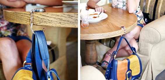 Подорожуючи без валізи, лише з сумкою чи портфелем, ви обов’язково зустрінетеся з проблемою відвідин кафе: з ручним багажем усюди відчуваєш себе як на вокзалі. Такий тримач чіпляється на край звичайного столу і слугує зручним крючечком для ваших речей.
