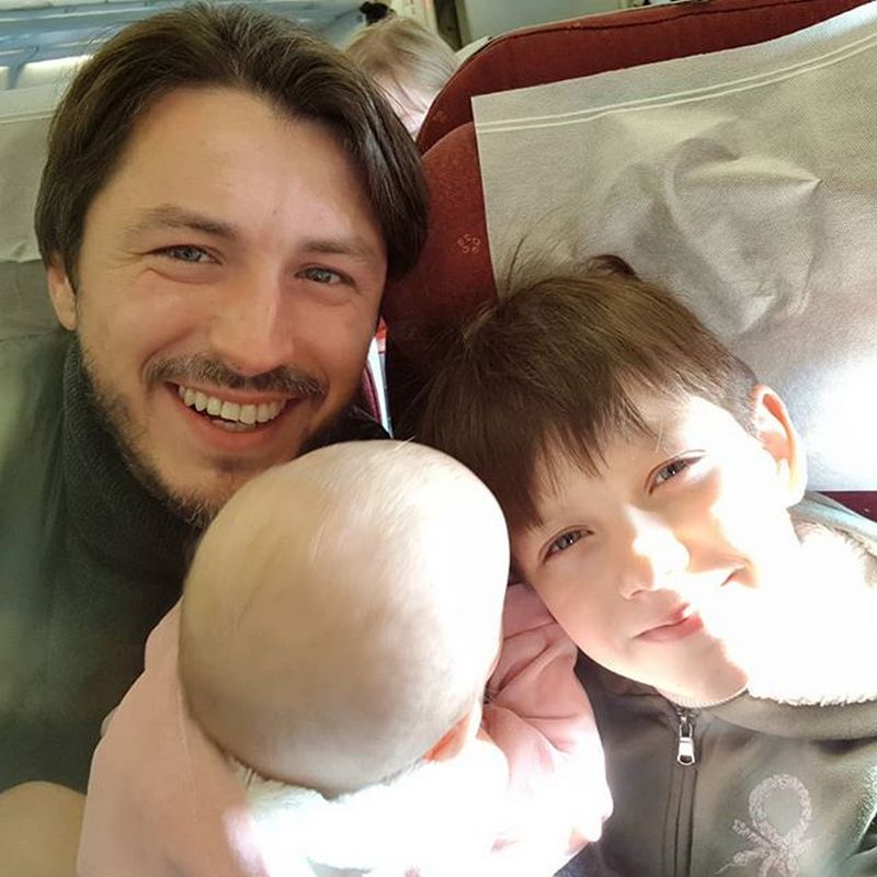 На знімках, якими Притула поділився в соцмережах , він позує зі старшим сином Дмитром та маленькою донечкою Соломією на борту літака.