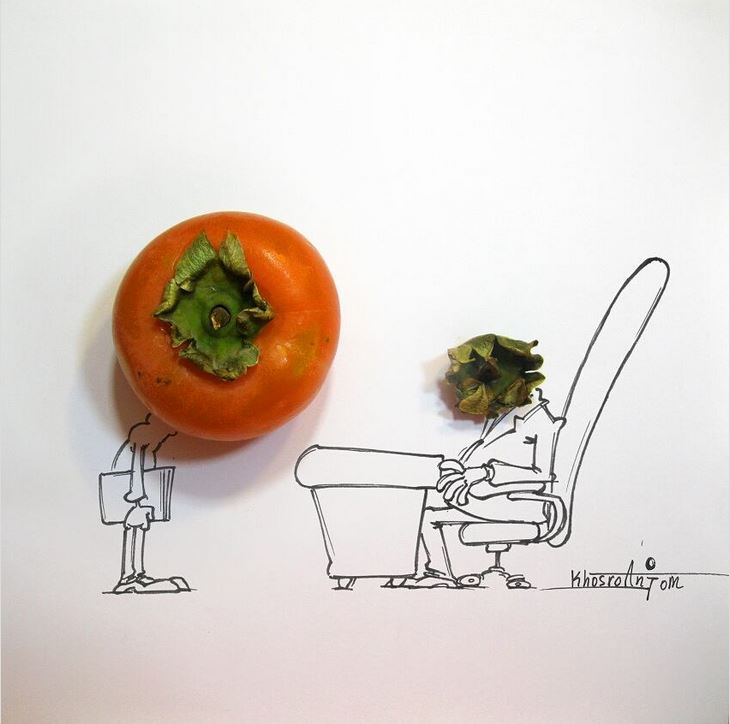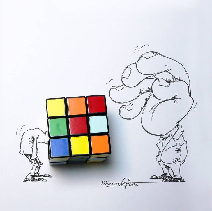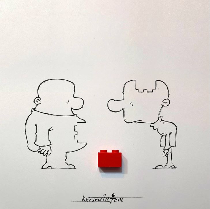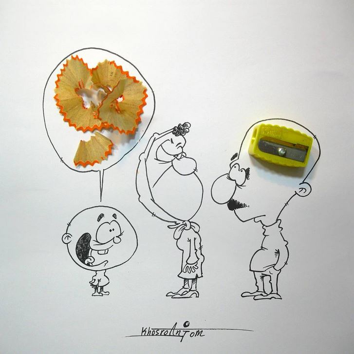 Іранський художник Маджид Хосроанжом малює карикатури з 15 років. Зараз його Instagram налічує вже понад 110 тисяч підписників. І все завдяки тому, що у своїх роботах він відкриває давно звичні речі із зовсім несподіваного боку. Маджид запросто може об’єднати деталь Lego або цибулину і графіку, щоб показати те, про що ми часом навіть не замислюємося.