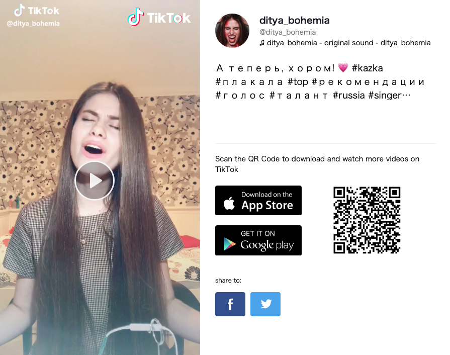 Подібний флешмоб розгортається й у мережі відеошерінгу TikTok — вона відома надзвичайно великою кількістю так званих lip-syncing video (де підлітки та молодь роблять танцювальні ролики, рухаючи губами під музику улюблених виконавців), а також відеокаверів та челенджів на краще виконання улюбленої пісні. Тут за тематичними тегами можна знайти близько сотні роликів, в основному створених користувачками з РФ, які взагалі не знають української мови (для перегляду роликів у новому вікні натисніть на скріншот):