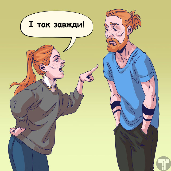 Не дозволяйте маніпулятору таких узагальнень. Спокійно попросіть навести приклад ситуації, що дозволили йому зробити такий висновок.