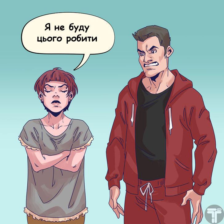 Універсальні відповіді: «Я не буду цього робити», «Мені неприємний діалог», «Закриймо тему», головне — не змінюйте інтонацію і не підключайте емоції. Це не має звучати підкреслено байдуже або токсично. Приклад діалогу: