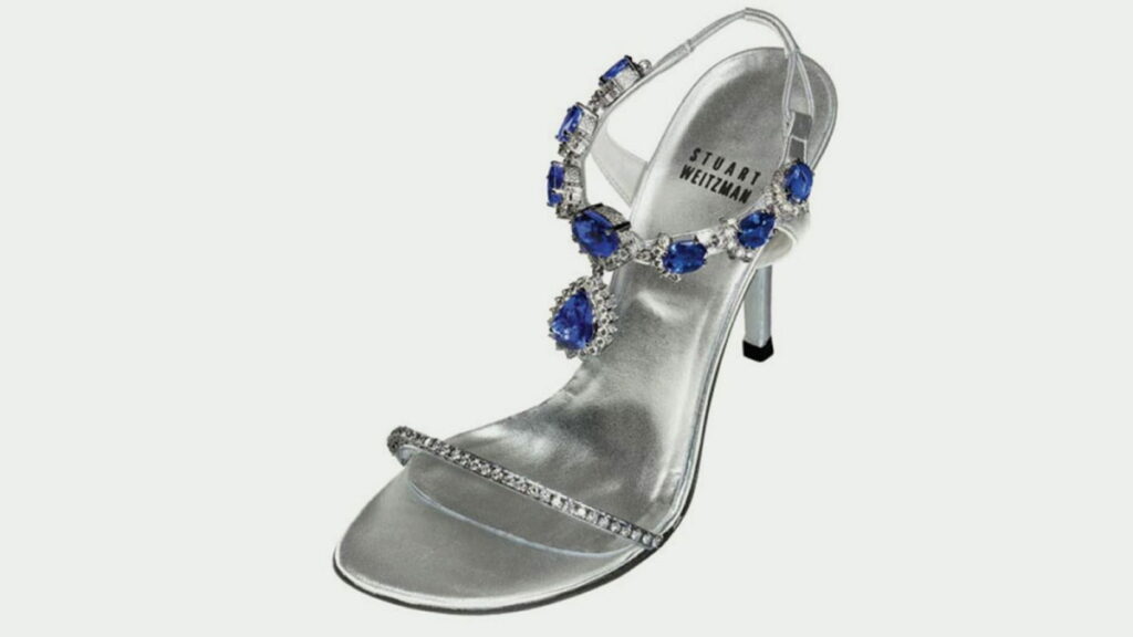До нашої п’ятірки найдорожчого взуття у світі увійшли “Танзанітові підбори” – сріблясті босоніжки від Стюарта Вайцмана, прикрашені діамантами та 185-каратним синім камінням танзаніту. Вартість? 1,6 мільйона євро!