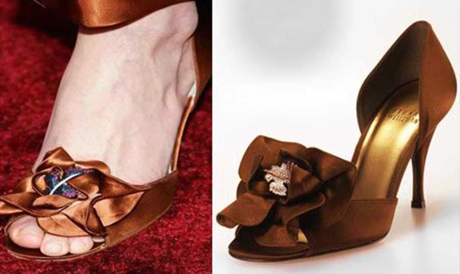 Гаразд, ми згодні: цей рейтинг монополізував Стюарт Вайцман! Знаменитий дизайнер взуття прославився тим, що виготовляє босоніжки та інші дорогоцінні туфлі на шпильках, особливо для знаменитостей в ніч вручення премії “Оскар”. Справедливості заради, окрім платини та коштовного каміння, дизайнер використовує всілякі матеріали, навіть найбільш “звичайні”, такі як коркове дерево, вініл та інші. У випадку з туфлями Rita Hayworth Heels – туфлями за 3 мільйони доларів – це елегантні атласні туфлі незвичайного відтінку, десь між іржею та вигорілою травою. Окрім кольору, привертає увагу ювелірна деталь: ювелірна в повному розумінні, адже кожне з двох туфель прикрашена сережкою з дорогоцінним каменем, що належала божественній Риті.