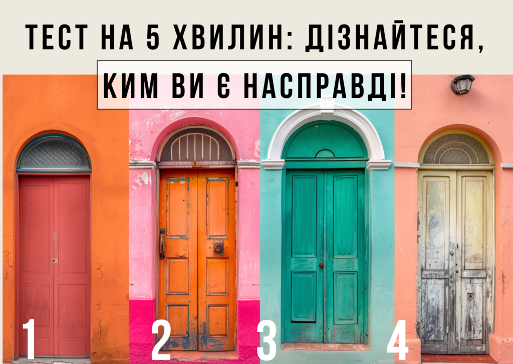 Цей простий тест допоможе вам краще зрозуміти себе та свій характер. Просто оберіть двері, які вам найбільше сподобалися, і прочитайте відповідь, щоб дізнатися більше про свої сильні та слабкі сторони.