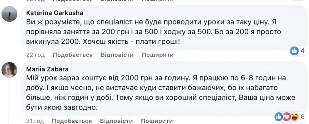 Не всі користувачі соцмережі погодилися з репетиторкою. Деякі люди вважають, що не всі можуть дозволити собі платити високі ціни за додаткові уроки.
