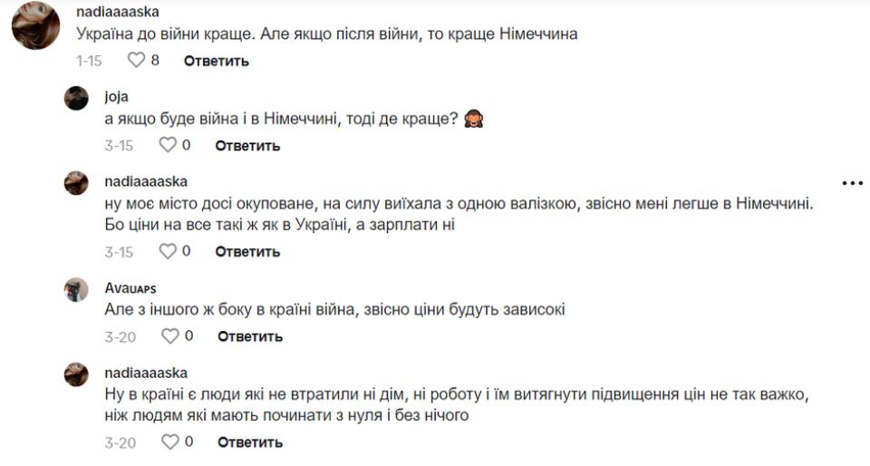 Інші українці поділились своїми думками у коментарях під відео Юлії про життя у Німеччині.