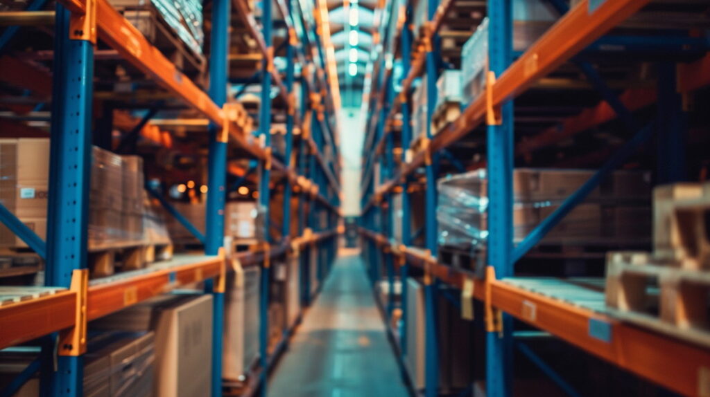 Складські мають вигляд багатоповерхової конструкції з вертикальними стійками та настилів міцного матеріалу. Додаткові елементи представлено у формі полиць, балок, консолей. Поширені серед логістичних центрів та промислових терміналів.