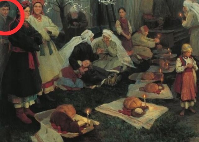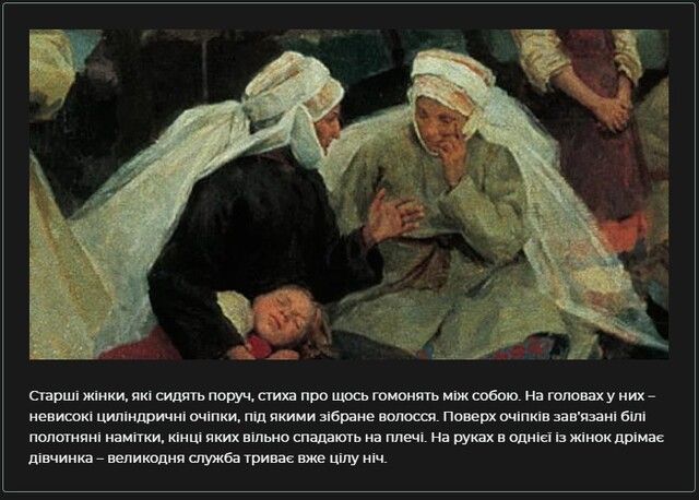 Йдеться про картину художника 19 століття, яка зображує великодній ранок під час служби в українській церкві.