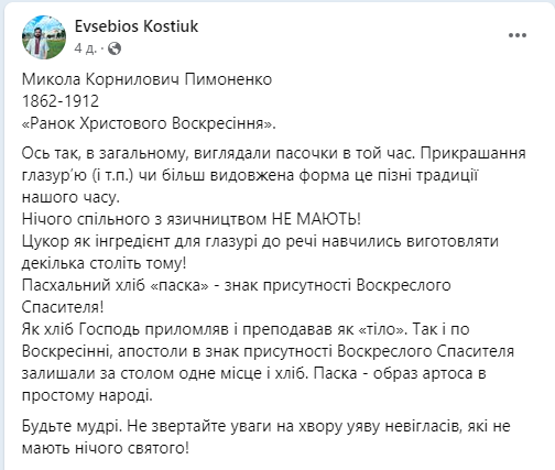 Однак, цікавим є той факт, що одне з найдавніших зображень святкування Великодня в Україні не несе в собі жодних “язичницьких” слідів.