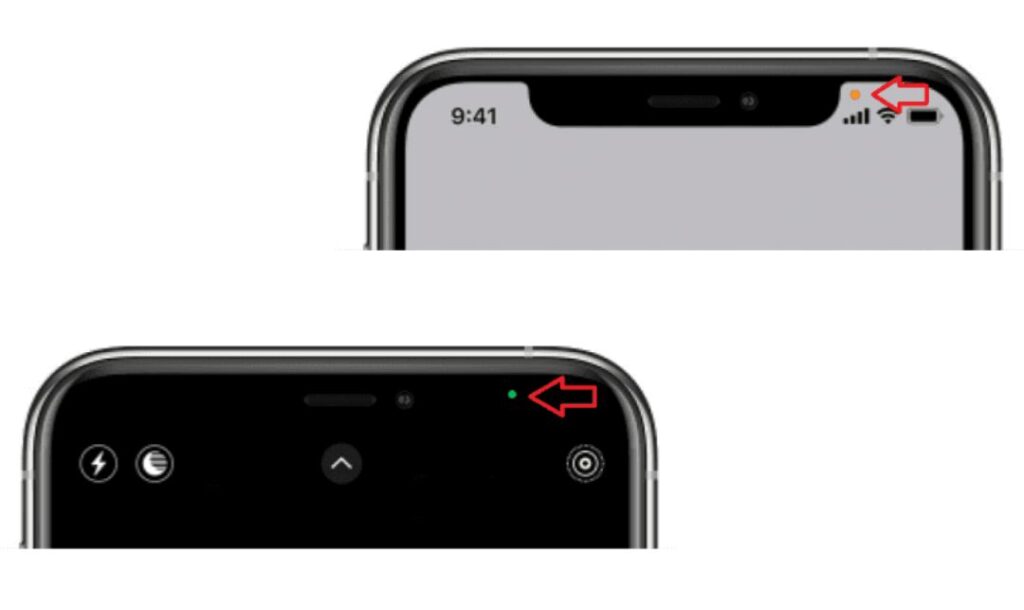 - Зелена крапка означає, що запущений застосунок використовує камеру, жовта крапка – що це мікрофон.