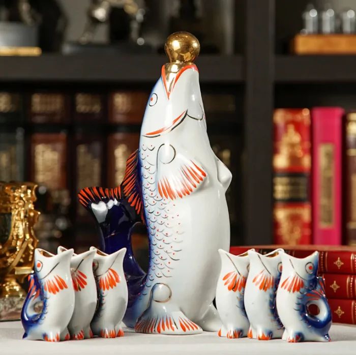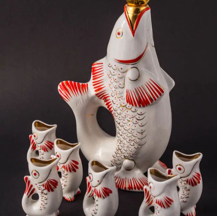 В багатьох домівках колись можна було знайти один і той же сервіз – набір з порцелянових синіх “рибок”. Цей сервіз, що складався з графину 700 мл та шести чарок по 30 мл, був дуже популярним, але ним ніколи не користувалися за призначенням. Його сприймали радше як елемент декору.