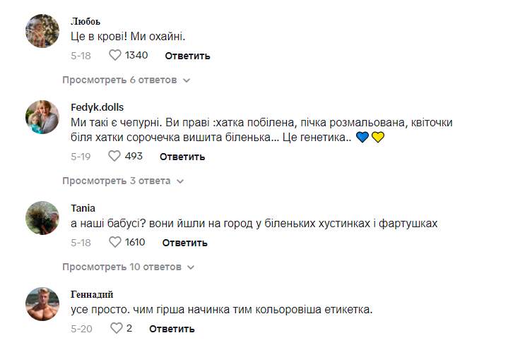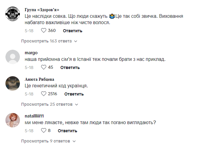 “Чесно, мені це подобається. Я тішуся тим, що наші українці виглядають гарно.” Відео українки набрало понад 26 тисяч вподобайок і тисячі коментарів. Не всі погодилися, що така увага до своєї зовнішності – це аж так важливо.