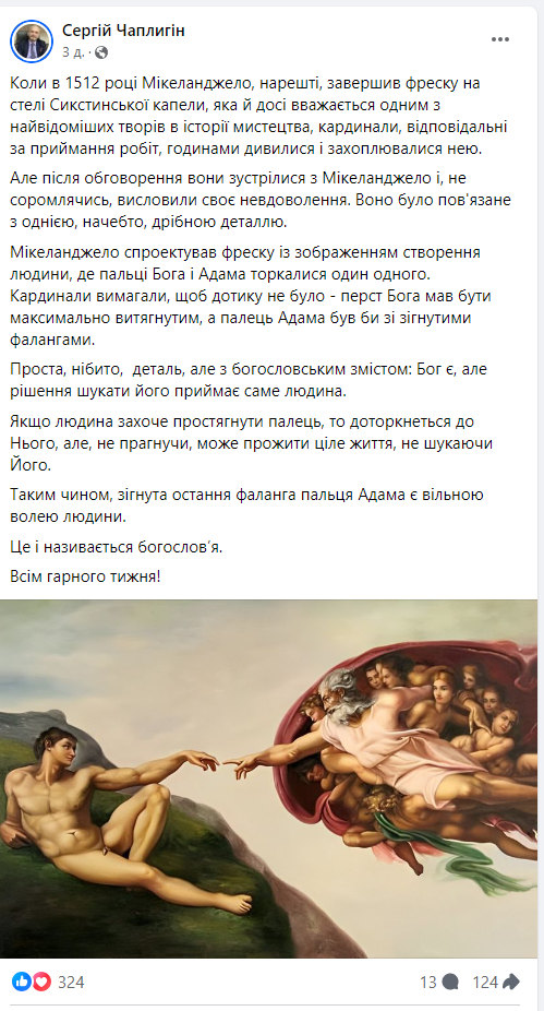Фреска Мікеланджело “Створення Адама” зображує не просто момент творення людини, але й глибинні філософські та богословські ідеї.