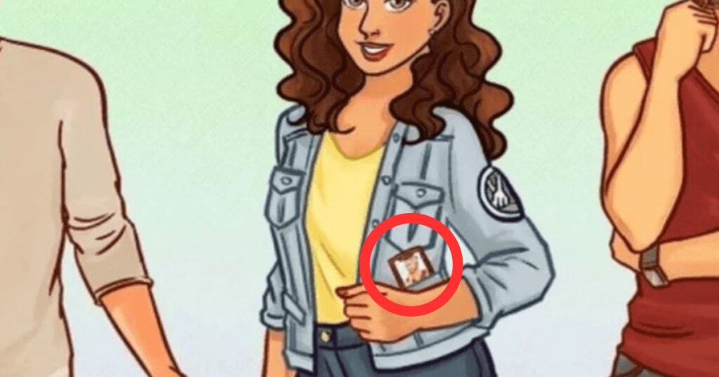 З кишені жінки, зображеної на малюнку, виглядає мобільний телефон. Якщо уважно придивитися, то на заставці телефону можна побачити фото її чоловіка. Цей факт дає нам ключ до розгадки особистості чоловіка, який стоїть з правого боку малюнка.