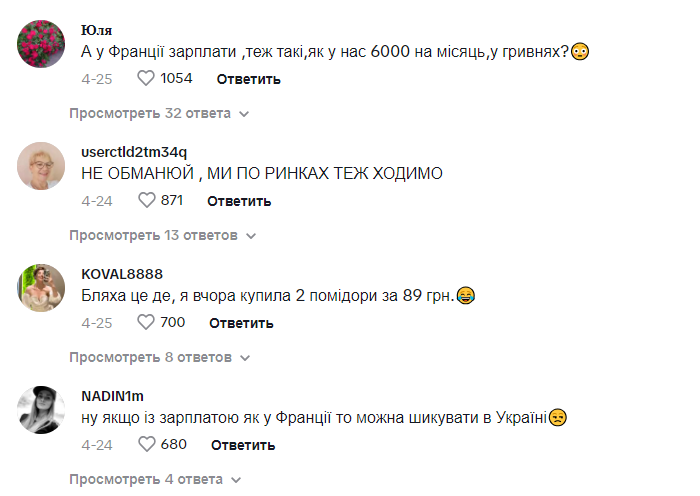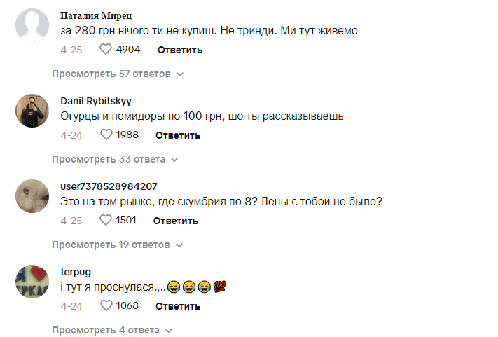 Варто зазначити, що не всі українці погодилися з Діаною. Деякі коментатори у ТікТок зазначили, що ціни на продукти в Україні також суттєво зросли за останні роки, і не для всіх вони є доступними.