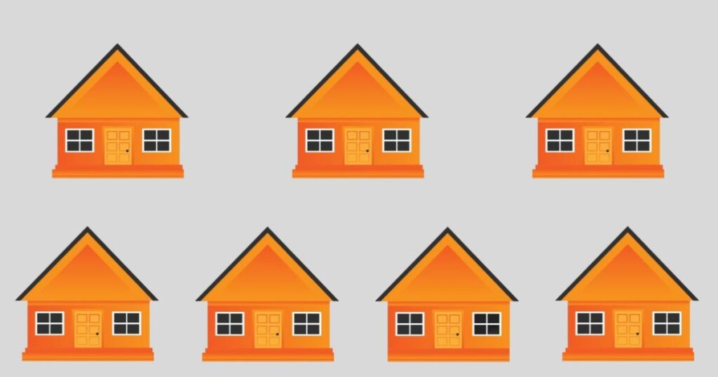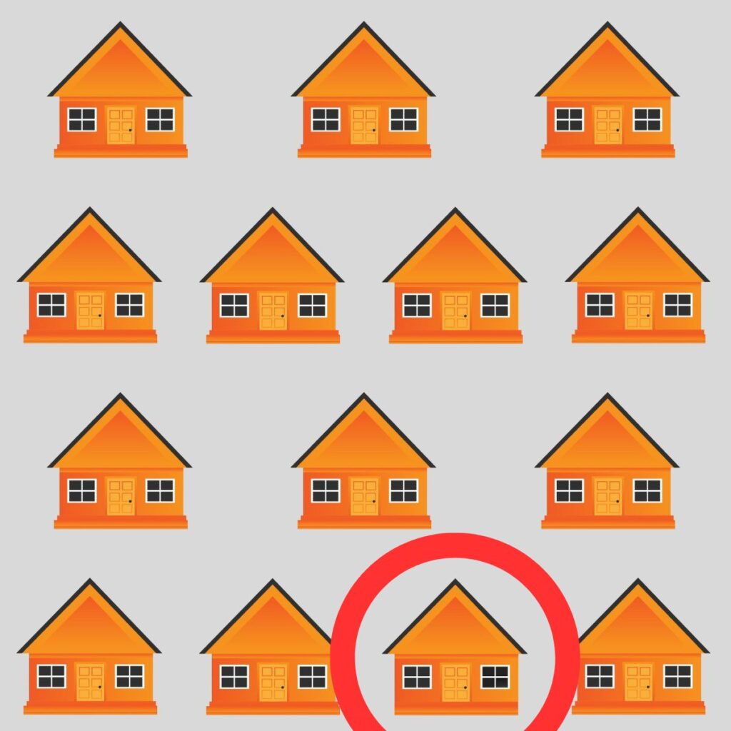 На перший погляд, всі будинки на малюнку здаються абсолютно однаковими. Проте, не все так просто, як здається на перший погляд. Якщо уважно придивитися, можна помітити, що один з будинків відрізняється від усіх інших.