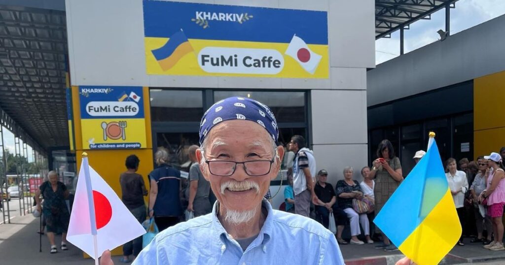76-річний японець Фумінорі Цучико став справжнім героєм для багатьох жителів Харкова та інших українських міст. Він відкрив безкоштовне кафе, щоб допомагати нужденним людям під час війни.