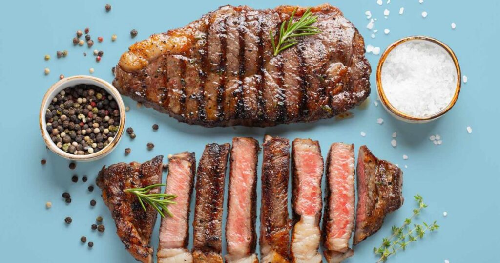 Зніміть стейк з гриля або сковороди і дайте йому відпочити 5 хвилин перед подачею. Це дозволить сокам рівномірно розподілитися по м’ясу, роблячи його ще більш соковитим.