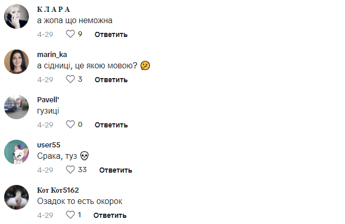 Реакція користувачів мережі на таку заяву була досить різноманітною. Дехто погодився з Фреймут, підкреслюючи важливість збагачення української мови. Інші ж висловили здивування, зазначивши, що слово “сідниці” є цілком зрозумілим і не потребує заміни.