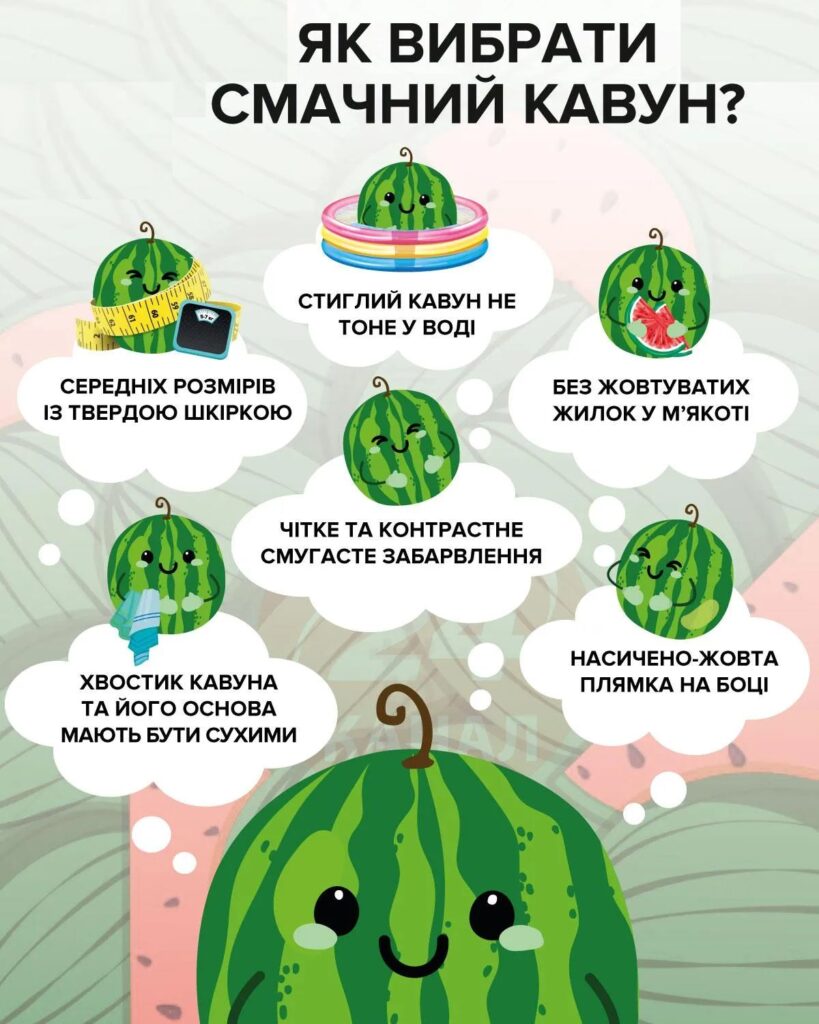 5. Які критерії допоможуть вибрати стиглий і солодкий кавун?