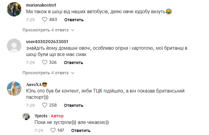 Відео Юлії Проць в TikTok викликало справжній фурор. За менш ніж добу його переглянули майже 250 тисяч разів і поставили 19 тисяч лайків. У ролику турист з Британії ділиться своїми першими враженнями від подорожі до України.