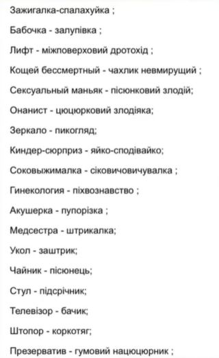 Про це розповів у своєму Instagram-дописі філолог Андрій Шимановський. Він зазначив, що слова на кшталт «пикогляд», «розщепірка» та «спалахуйка» були вигадані радянськими КВН-щиками саме з метою висміювання української мови. Цю естафету підхопила російська пропаганда, яка й досі продовжує поширювати подібні фейки.