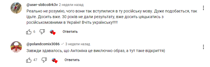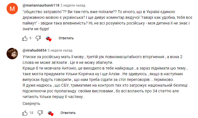 Однак частина користувачів інтернету не поділила захоплення ведучої і висловила незадоволення тим, що блогерка заговорила російською, закликаючи її до мовчання: