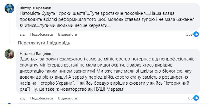 Проте, запропоновані зміни викликали бурхливу дискусію в суспільстві. Багато хто підтримує ідею розширення історичної освіти, вважаючи її необхідною для всебічного розвитку особистості. Водночас, є й ті, хто висловлює занепокоєння щодо надмірного навантаження на учнів та необхідності додаткових ресурсів для реалізації таких програм.