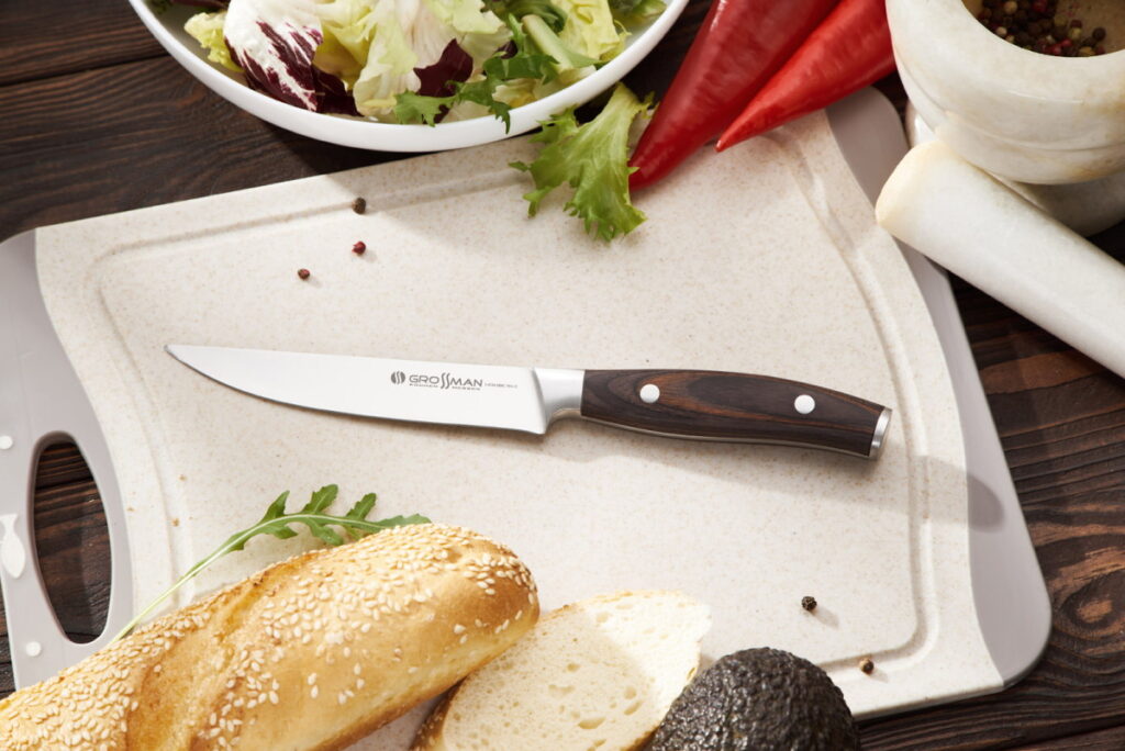 Цей ніж стане вашим незамінним помічником у будь-якій справі на кухні. Він підходить для подрібнення овочів, нарізанням м’яса, приготування бутербродів та інших простих повсякденних страв. Кухонний ніж, як він є. Його можна зустріти на більшості кухонь. Універсальні ножі зазвичай мають лезо довжиною 10-15 см.