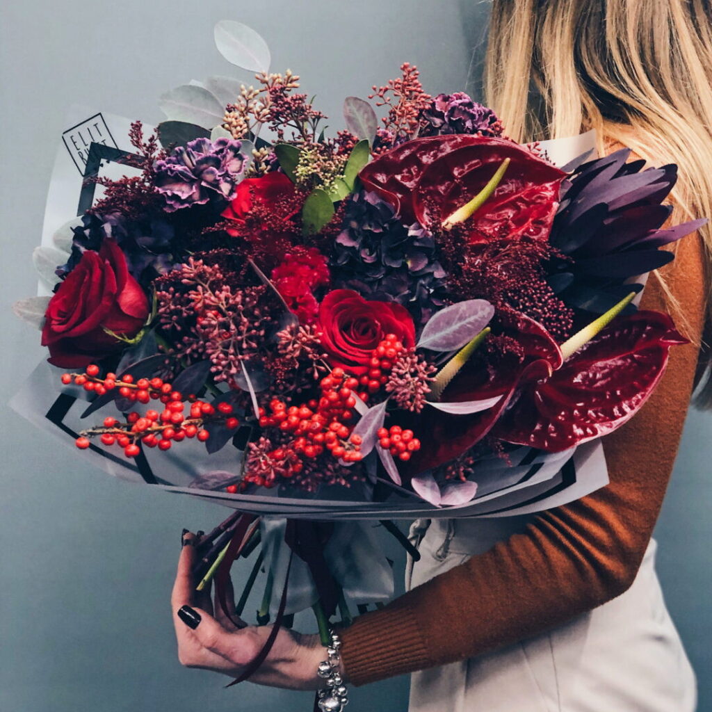 - Чоловічі букети зазвичай мають більш структуровану, геометричну форму. Уникайте надто “пухнастих” або романтичних композицій.