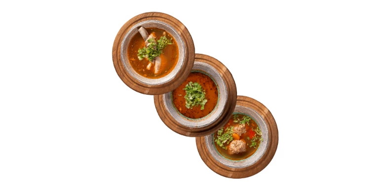- Перші страви. Можна спробувати легкий курячий бульйон, окрошку по-грузинськи, наваристу шурпу, харчо та інші страви.