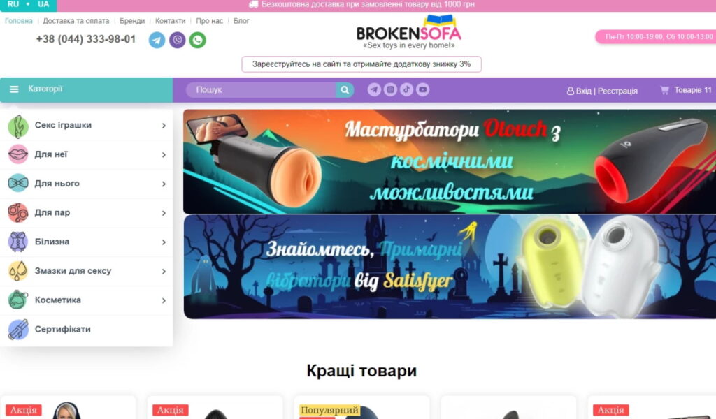 BrokenSofa – один з небагатьох магазинів зі списку, який дійсно здатний подарувати насолоду незалежно від того, що ви обираєте в його асортименті. Адже це – молодіжний секс-шоп, за допомогою якого можна вдовольнити найпотаємніші та найдивніші бажанки.