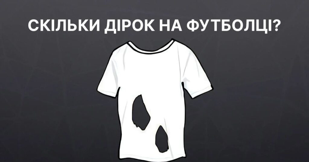 Завдання здається простим на перший погляд. Вам показують зображення футболки з двома великими розрізами. Логічно припустити, що в футболці дві дірки. Однак, ця головоломка приховує невеликий підступ, який і перевіряє вашу уважність та здатність мислити нестандартно.