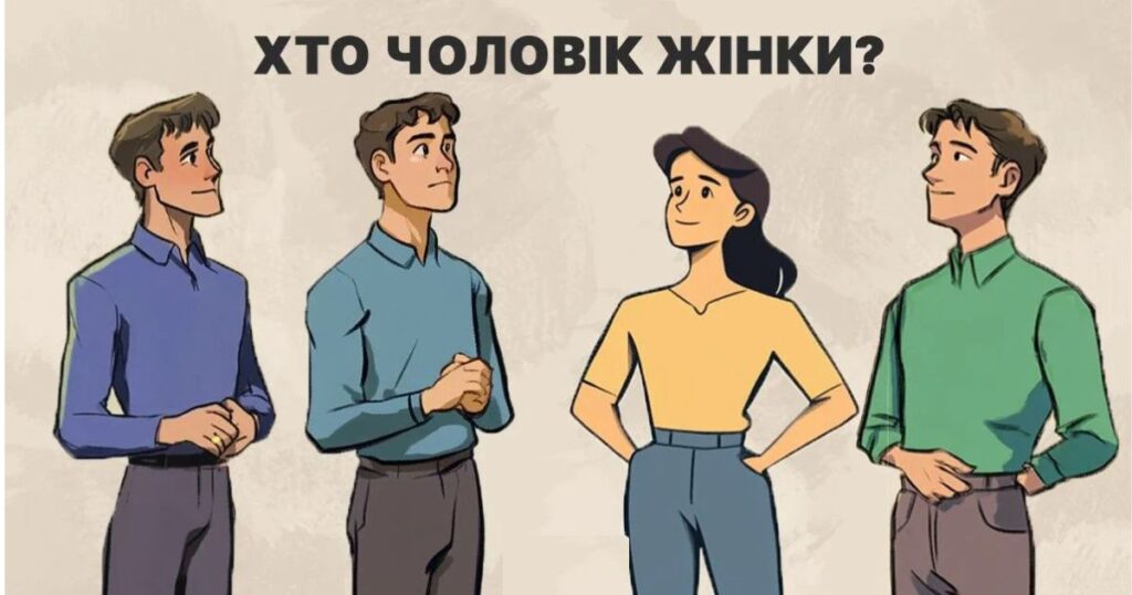 Готовi прийняти виклик? Перед вaми зображення, нa якому зображена жінка в жовтій кофтинці тa троє чоловіків. Ваше завдання – визначити, хтo з цих чоловіків є чоловіком жінки в жовтій кофтинці.