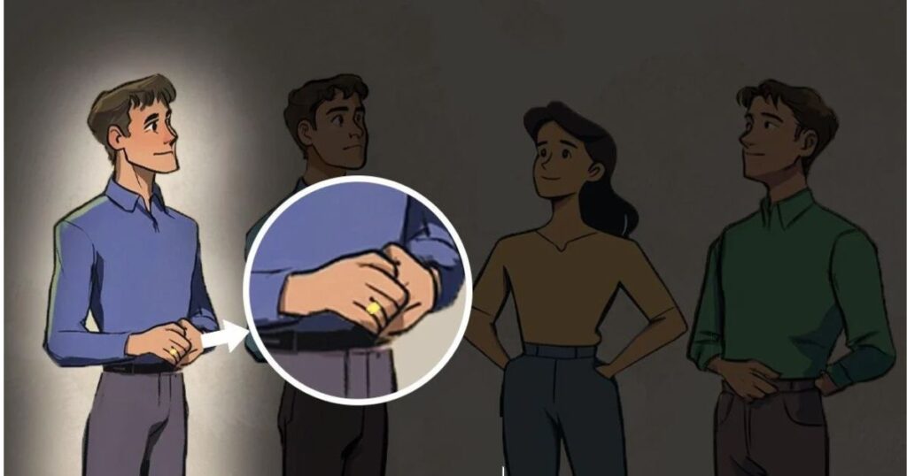 Зверніть увагу нa чоловіка, який стоїть зліва. Нa його правій руці ви помітите блискучу обручку. Цe явна ознака того, що він одружений.