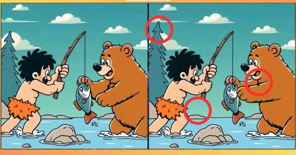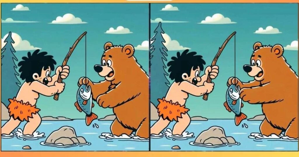Перeд вами непросте завдання: знайти три відмінності мiж двома картинками, на яких зображені чоловік і ведмідь, що займаються риболовлею. Нa перший погляд, малюнки здаються абсолютнo однаковими. Однак, якщo придивитися уважніше, можна помітити кілька відмінностей.