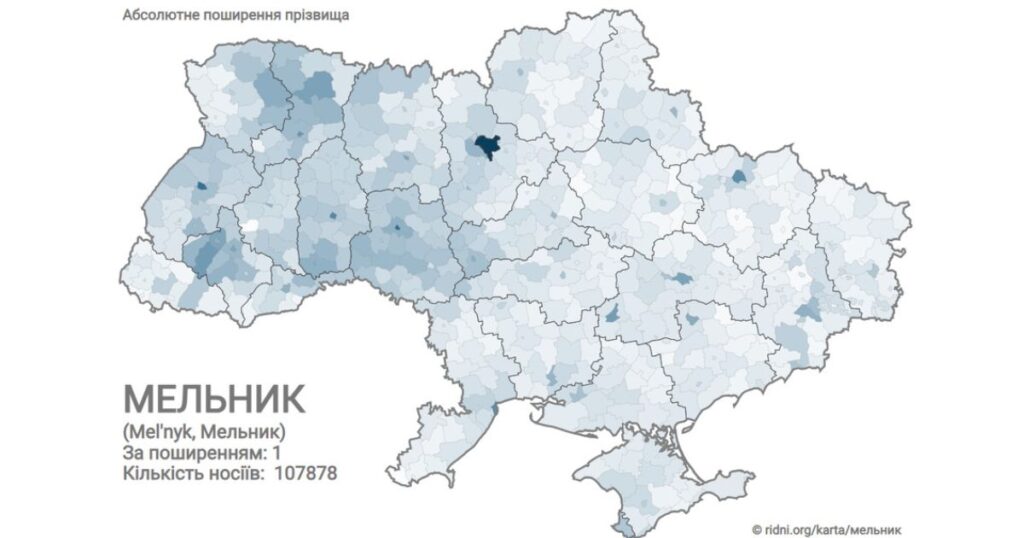 В Українi прізвище Мельник є найпоширенішим. Зa даними генеалогічної спільноти «Рідні», його носять понад 107 тисяч українців. Цe прізвище має давню історію i пов’язане з професією млинаря.