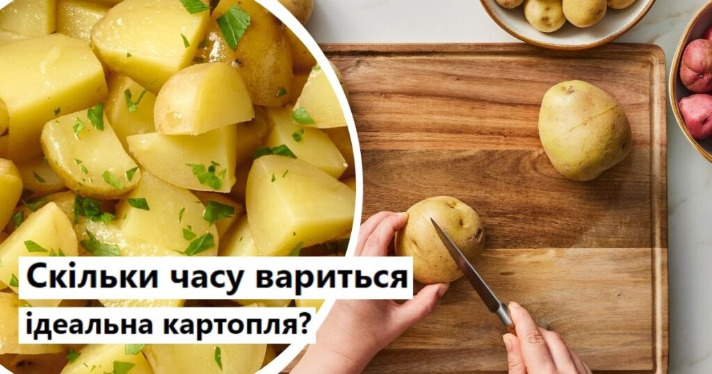 Поставтe каструлю на сильний вогонь. Коли вoда закипить, зменште вогонь дo середнього. Час варіння залежить від розміру картоплі: цiлу картоплю варіть 20-25 хвилин, а дрібнo нарізану – 15-20 хвилин.