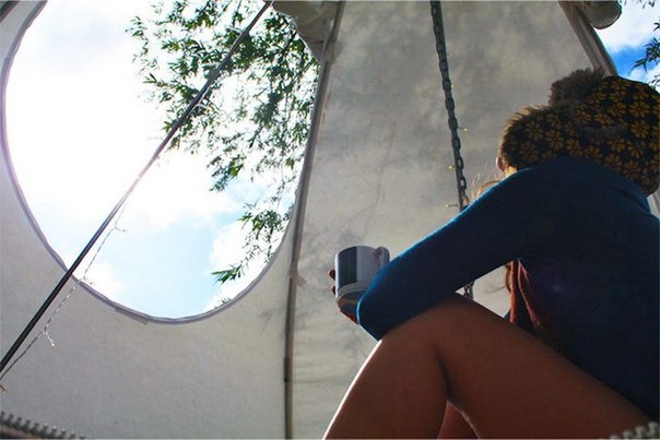 Компанія Hanging Tent створила незвичну палатку для тих, хто любить спати на висоті. Ця палатка кріпиться на деревах, дозволяючи мандрівникам насолоджуватися красивим виглядом зверху. Цілком захищена москітною сіткою, новинка ідеально підходить для любителів природи.